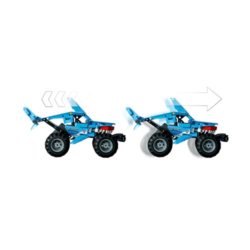 Descubre una genuina réplica de un vehículo favorito de los fans de las competiciones Monster Jam™: el set de construcción LEGO® Technic Monster Jam Megalodon™ (42134). Este detallado camión con motor de carga manual para niños a partir de 7 años incluye motivos gráficos y colores de gran fidelidad. La acción de carga manual inyecta emoción a las sesiones de juego mientras los peques compiten con su camión y ejecutan asombrosos trucos. Las aletas se mueven cuando el camión monstruo de juguete avanza a toda velocidad y los realistas dientes del tiburón y sus grandes neumáticos aportan aún más autenticidad para pasarlo genial durante horas.