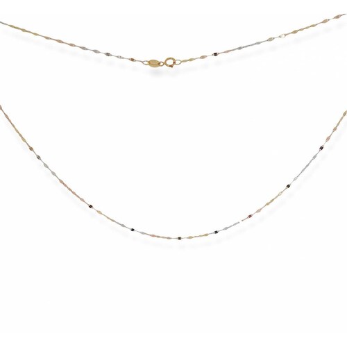 PRECIOSA CADENA EN 3 OROS SÓLIDO DE 10K Medida Cadena: 50 cm Ancho: 1.5 mm Peso: 0.8 gr Ideal para damas que las hará lucir muy femeninas