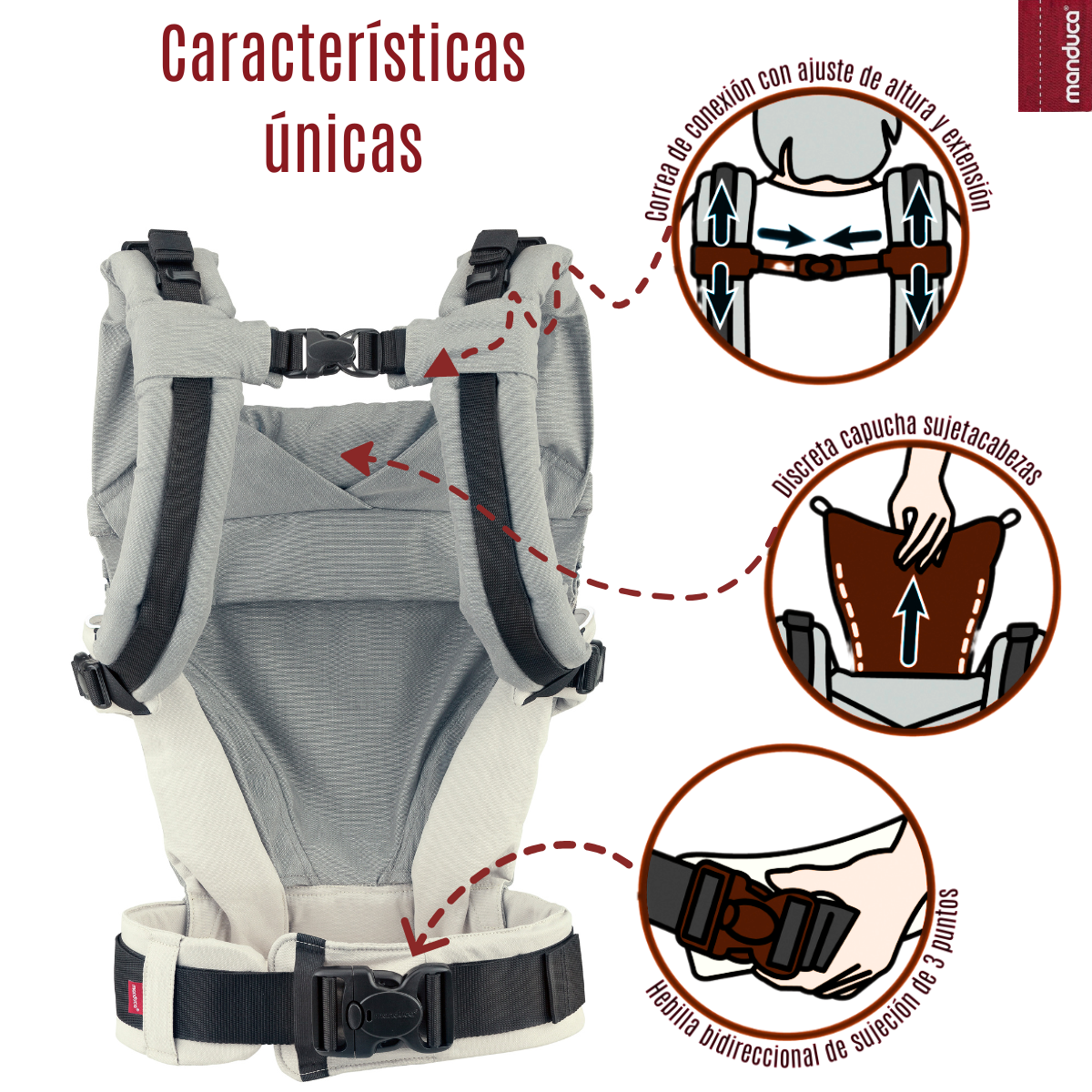 Súper elegante, con fantásticos colores Lo mejor: la manduca XT se ve increíble. Muchos modelos elegantes con combinaciones de colores de moda, hacen que la manduca XT llame siempre la atención. El material también es excelente: 100% algodón orgánico por dentro y por fuera. Seguridad en la compra Se envía con tarjeta y tríptico de compra foliados que asegurar la originalidad de la mochila. Grupo de apoyo Con tu compra, te podrás inscribir al grupo de apoyo de padres para el correcto cargado mediante clases guía grabadas, y también incluye una asesoría online personalizada de 30 minutos, una vez registrada la garantía. Asiento flexible. Independientemente del tamaño de tu pequeño: el asiento de la manduca XT se puede ajustar fácilmente, de 16 a 50 cm. La zona acolchada de las piernas hace que el portabebés sea cómodo y suave. Altura regulable para los más pequeños. Adaptabilidad óptima para recién nacidos a partir de 3,5 kg. Sólo ajústalo según sea necesario. Altura ajustable para los grandes. Cuando tu bebé crece: la espalda crece con tu bebé. Hasta la edad de jardín de infantes. Tirantes y hebillas. Hechos para un ajuste fino óptimo para garantizar que tu bebé esté siempre cerca de tu cuerpo y tenga suficiente espacio al mismo tiempo. Correas. Las correas son fáciles de sujetar y desplazar sin problemas a lo largo de toda la correa para el hombro. Dándote una distribución óptima de la fuerza de tracción, haciéndolo extremadamente cómodo. Práctica capucha. La capucha se puede guardar por completo cuando no se necesita. Cuando se abre, es muy suave. Soporte para el cuello. Con un movimiento de muñeca, la capucha se convierte en un soporte para el cuello para aliviar el peso de la cabeza. Broche de seguridad de tres puntos. Fácil de abrir con una sola mano, pero nunca de forma accidental. Porque la seguridad de su bebé es muy importante para nosotros.