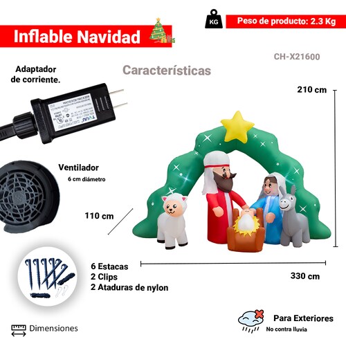 El Nacimiento de Jesus inflable, es uno de los adornos más adorables de la época navideña. Su diseño le da un toque de ternura. Esta Navidad deja que esté tierno inflable visite tu casa.