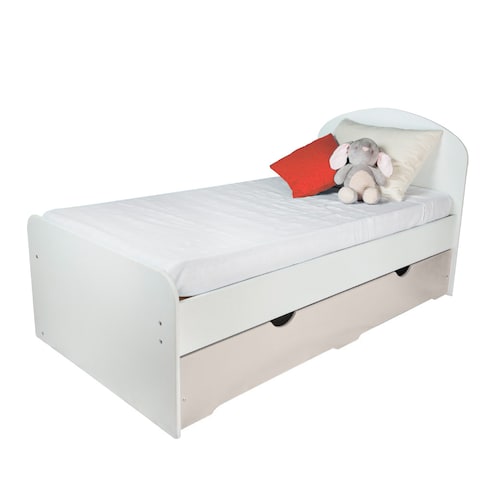 Cama nido doble, color blanco y turquesa, modelo nube de marca Duduk. La cama baja cuenta con cuatro ruedas * Edad Recomendada: 9 años en adelante * Medidas individual: - Largo: 196 cm - Ancho: 110 cm - Alto: 107 cm * Materiales: Mdf/Pino/Poliuretano libre de tóxicos * Garantía: 180 días naturales * Marca: Duduk * Colchón de la cama nido máximo de 15cm de altura * Se adapta a cualquier colchón individual estándar, recomendamos un colchón de 20cm o menos de altura