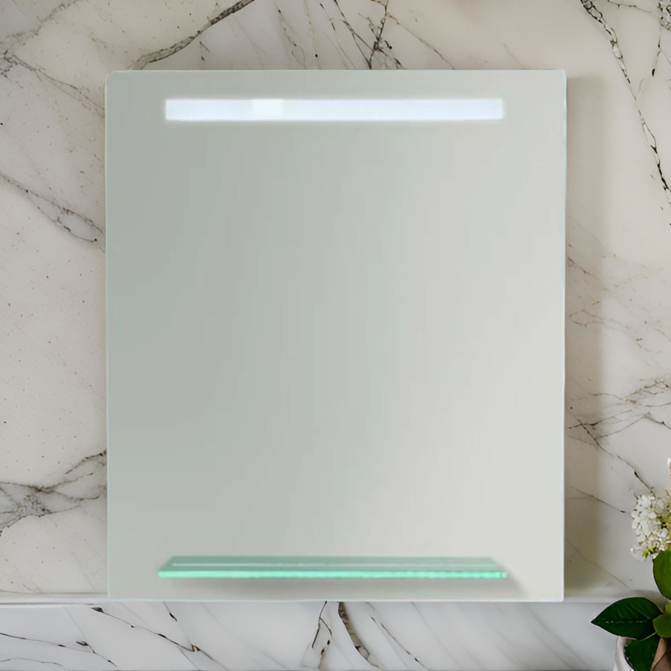 Espejo VA con iluminación LED de 70 X 80 cms. (base por altura) Forma rectangular con interruptor. Conexión de clavija a luz eléctrica.