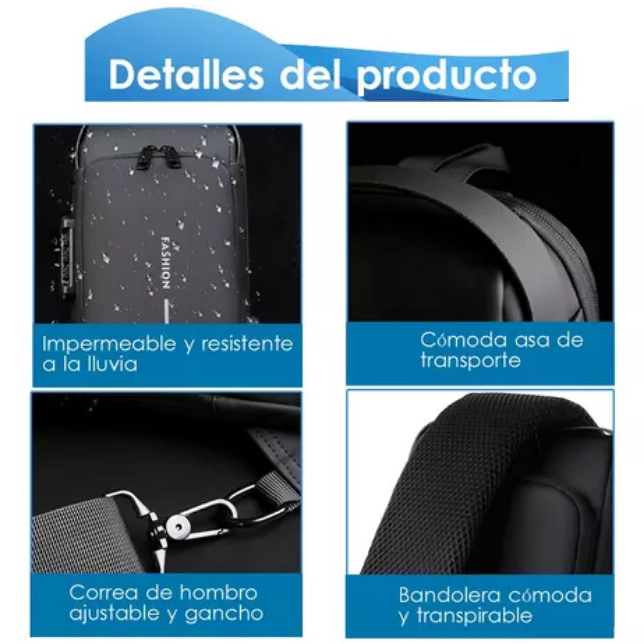 Mochila Cruzada Antirrobo Impermeable Para Hombre