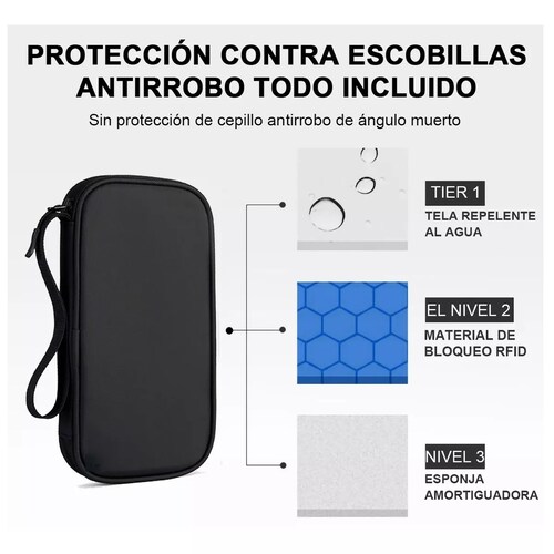 Lista de paquetes: 1 x Bolsa De Viaje De Pasaporte Especificación: Color: Negro/Azul Material: Tela Oxford impermeable 900D Dimensiones: 20x12x2.8 cm Peso: 220g Descripción: Esta hermosa billetera de viaje está hecha de tela oxford con bolsillos con cremallera, bolsillos para identificación, compartimentos y más RFID para guardar su pasaporte, tarjetas de crédito y efectivo, y el material protector evita que los ladrones y estafadores escaneen su pasaporte y tarjetas de crédito.La billetera está diseñada con una correa de mano, que libera sus manos cuando se registra. El diseño de tela impermeable garantiza que sus accesorios no se mojen bajo la lluvia. Haga que su viaje sea cómodo y emocionante. Características: 1. Protección contra escobillas antirrobo con todo incluido 2. Práctico diseño de selección y colocación de tarjetas de registro 3. Gran capacidad,Con capacidad para 4-5 pasaportes, 1 monedero, 1 portalápices, 1 bolsillo exterior, 9 tarjetas de crédito y documentos de viaje en esta cartera de viaje familiar.