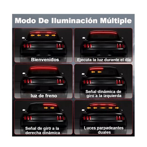 3. Efecto de iluminación: la luz LED del alerón tiene una variedad de modo intermitente: cuando comienza a conducir, la luz roja de baja brecha se iluminará; la señal a la izquierda y a la derecha; la luz roja brillante y brillante se enciende durante el frenado. Cuando presiona el botón de advertencia, la luz se enciende desde el centro y se mueve rápidamente. La luz trasera que recoge los ojos proporciona un mejor efecto de advertencia y garantiza su seguridad de conducción.
