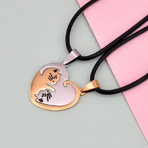 Collares De Pareja Yin Yang Gatos Acero Inoxidable