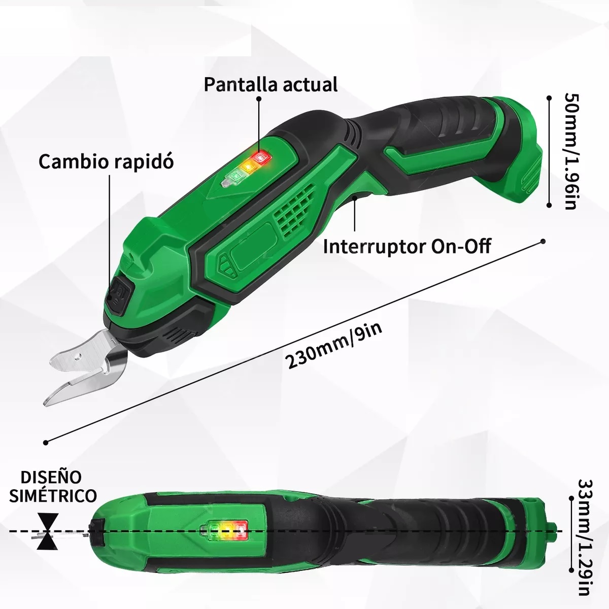 Tijera Eléctrica Inalámbrica Para Cortar Lamina Tela Shawty Verde/Negro.