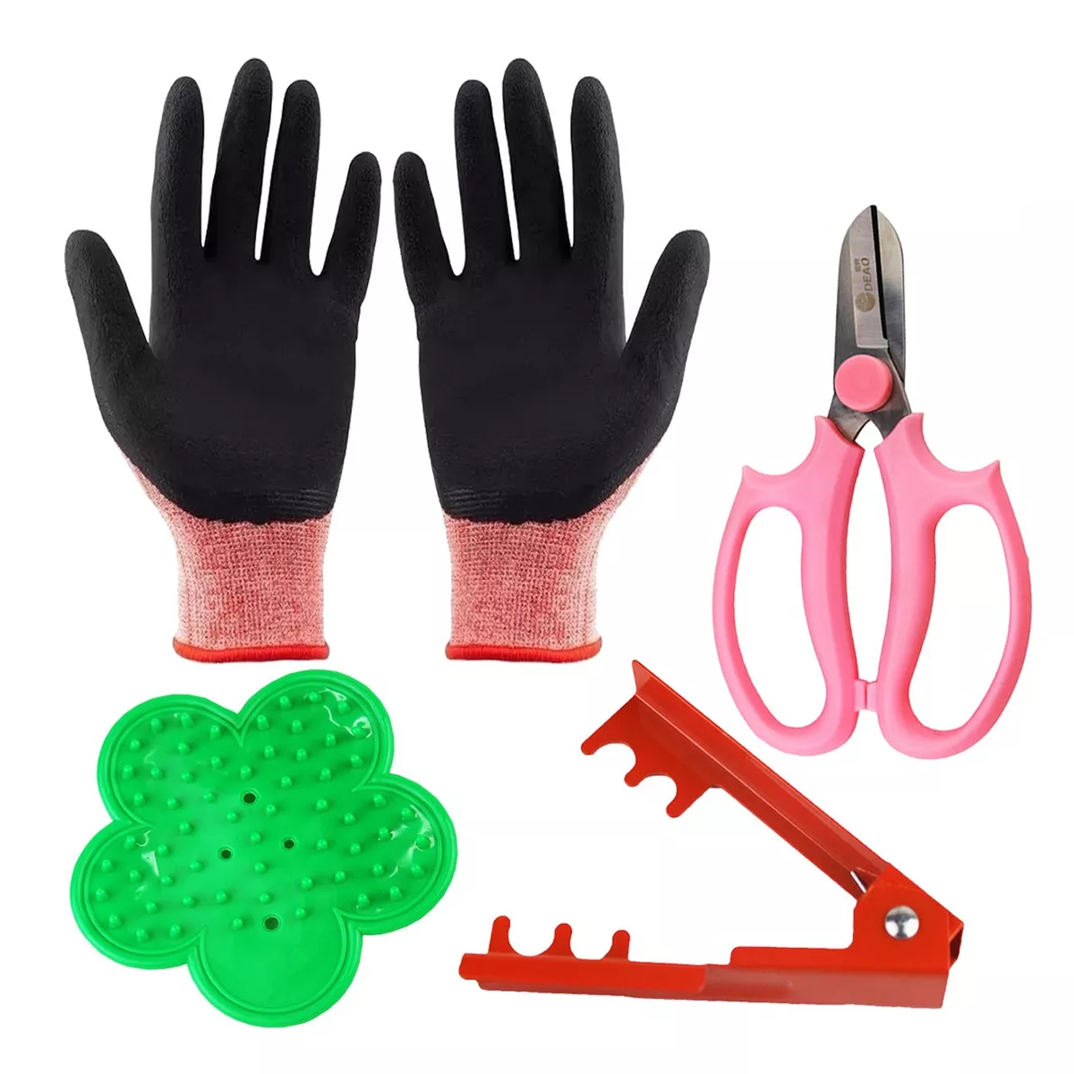 Cizalla floral: punta afilada de acero de alta calidad, hoja afilada con precisión, tornillos duraderos de acero, alta dureza, resistencia al desgaste y resistencia a la oxidación, tapones de tornillo ABS, diseño de ranura de mango, mango PP cómodo, durabilidad y mano de obra fina. Gel suave perforante: material de goma suave ligero con guantes que simplemente apuntan a las perforaciones y las empujan hacia arriba para eliminarlas rápidamente. Ideal para principiantes! Guante: de alta elasticidad, con recubrimiento diacrílico. Respirable y resistente. Retire el clip de apuñalamiento: hecho de material de pintura de hierro, no es fácil de oxidar, duro y resistente al desgaste, rápido para pinchar. ¡El conjunto es perfecto para cuidar su jardín en casa para el uso de los floristas para la poda! Muy eficiente!