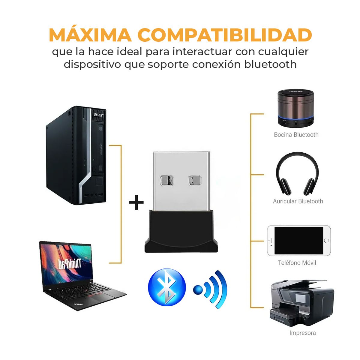Adaptador Bluetooth USB 2.0 Para PC o Laptop WI04 Máxima compatibilidad que la hace ideal para interactuar con cualquier dispositivo que soporte conexión bluetooth. El diseño de mini forma perfectamente integrado con el portátil o escritorio cuando esta en uso no ocupa espacio.