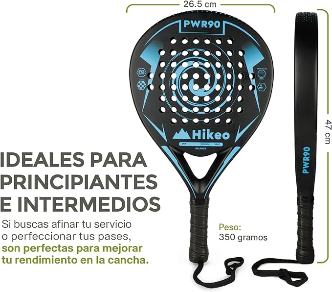 A Hikeo Pala de Pádel con Funda, 3 Pelotas y Grip, Kit de Raqueta para Pádel Fabricada con Espuma EVA Flexible y 100% Fibra de Carbono, Resistente y Ligera, para Principiantes e Intermedios.