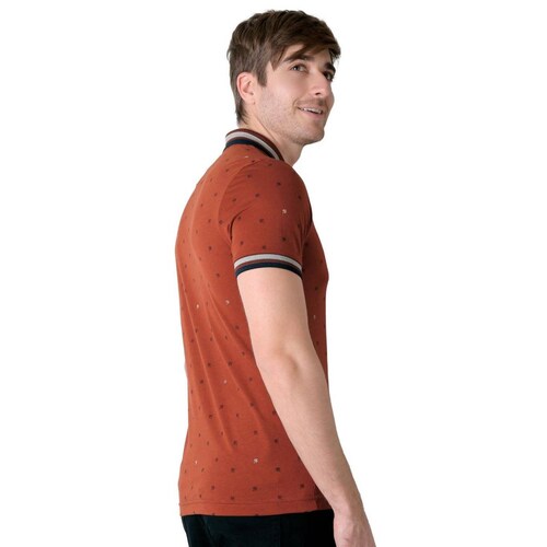 Playera manga corta, estampada, cuello polo, contraste en cuello, mangas.