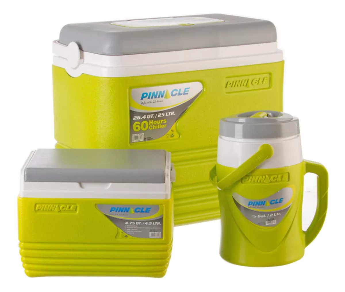 Hieleras 25 Y 4.5lts Y Termo 2.5lts Con Asas Pinnacle Cooler Verde.