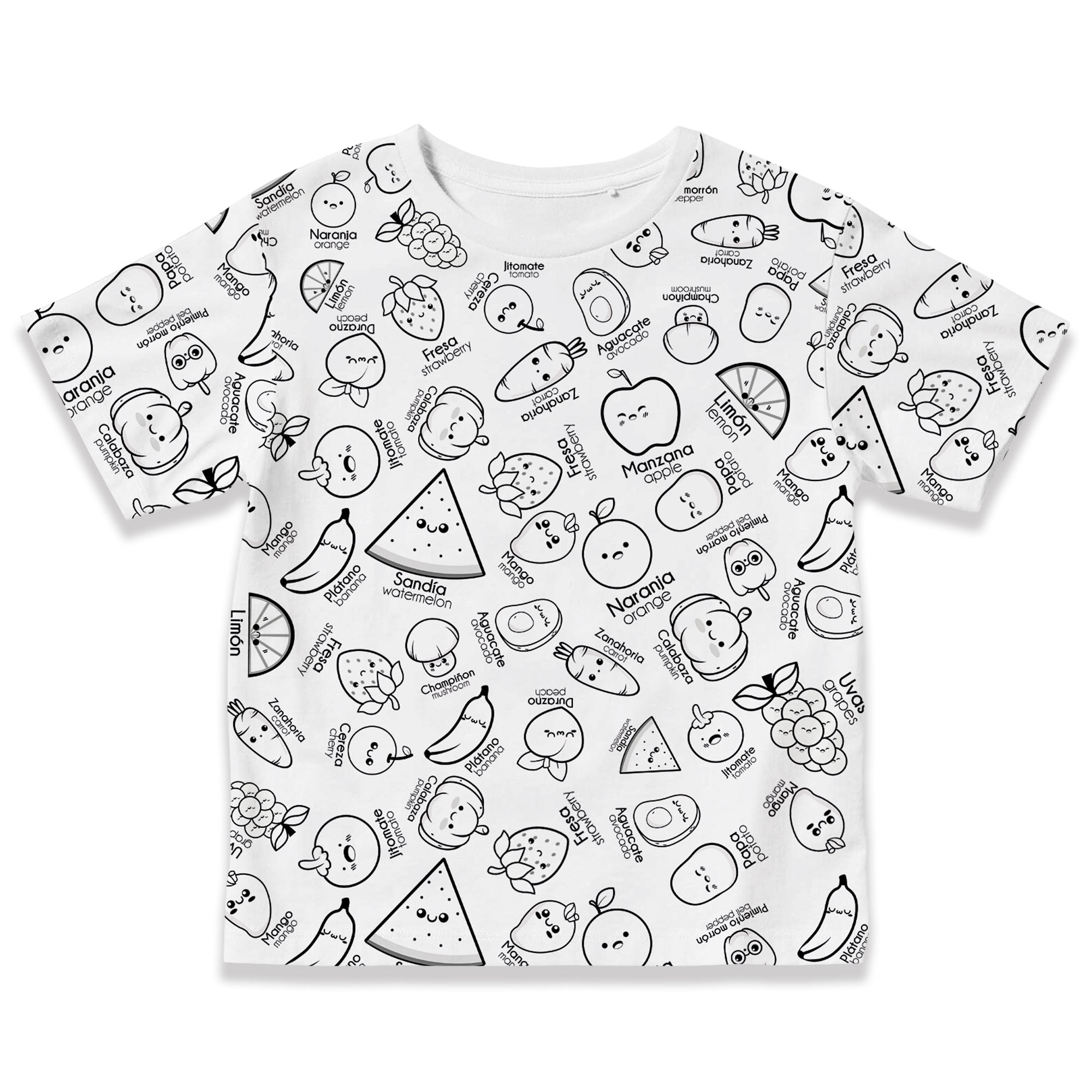 Pijama de Niños Para Colorear/Dibujar Unisex De Frutas y Verduras Bilingüe Didáctico Coloreable Plumones Incluidos