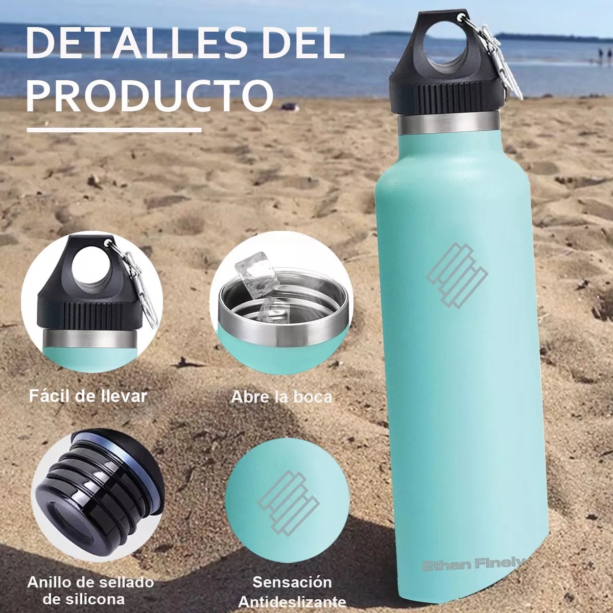 Mosquetón Multiusos Y Práctico :La taza acero inoxidable incluye un mosquetón metálico extraíble lo que nos facilita el transporte de la termo agua. El mosquetón del asa se puede colgar en la mochila para ayudarnos a tener las manos libres.