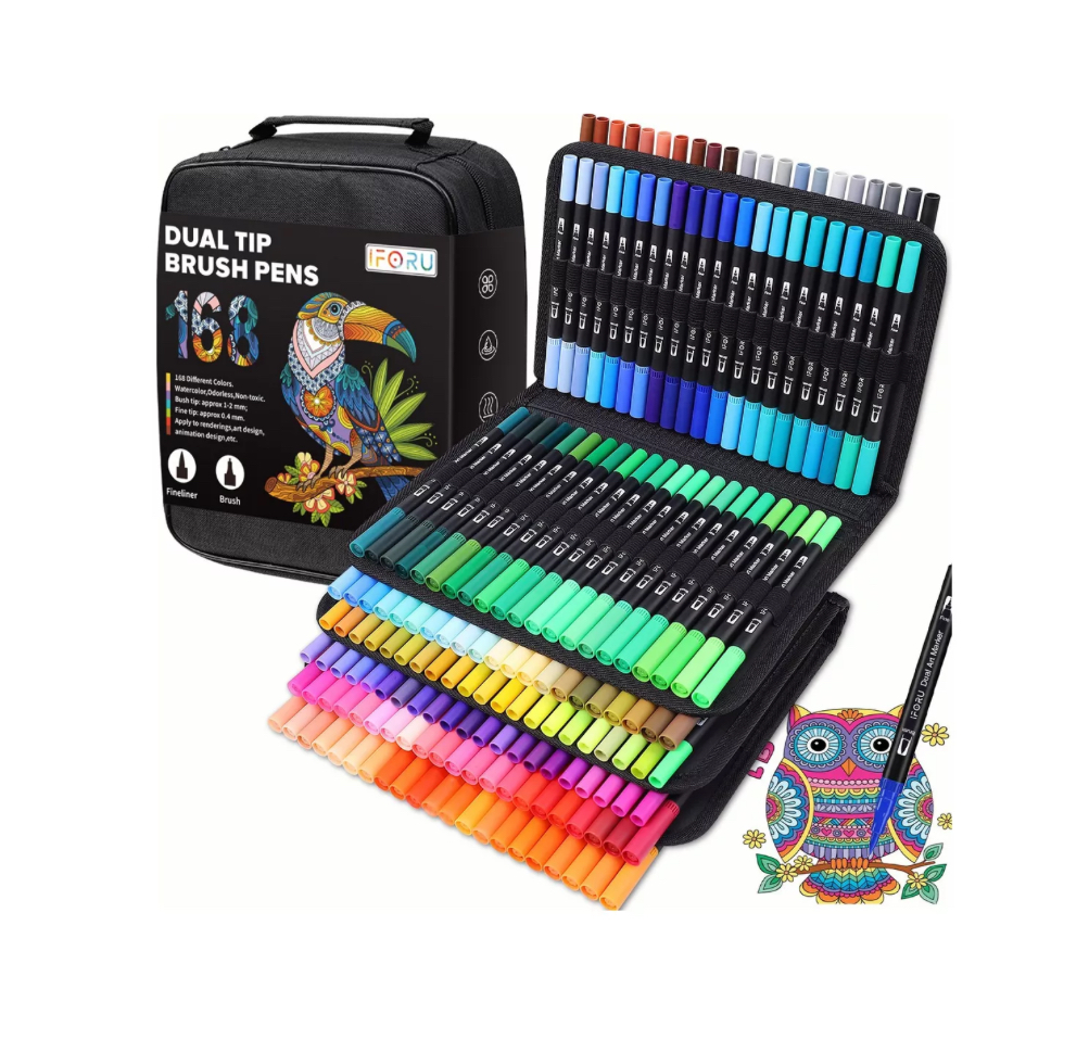 Los rotuladores de dibujo tienes 168 pinceles de diferentes colores, son más suaves no traspasan la hoja, secado rápido, no es fácil de desvanecer y duradera.