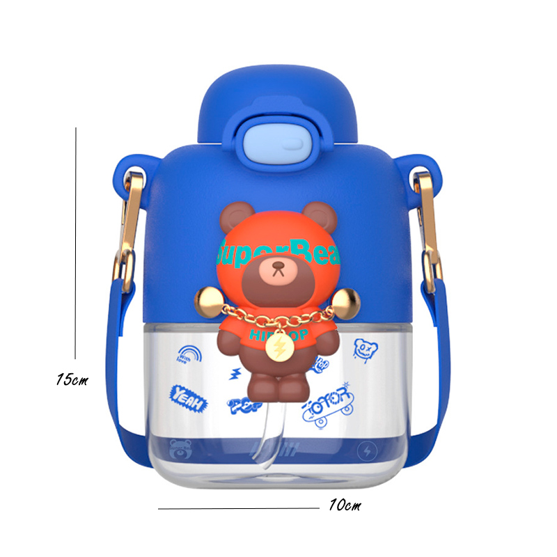 Botella Agua 550 Ml Cantimplora Popote Correa Tritan libre Bpa Negro