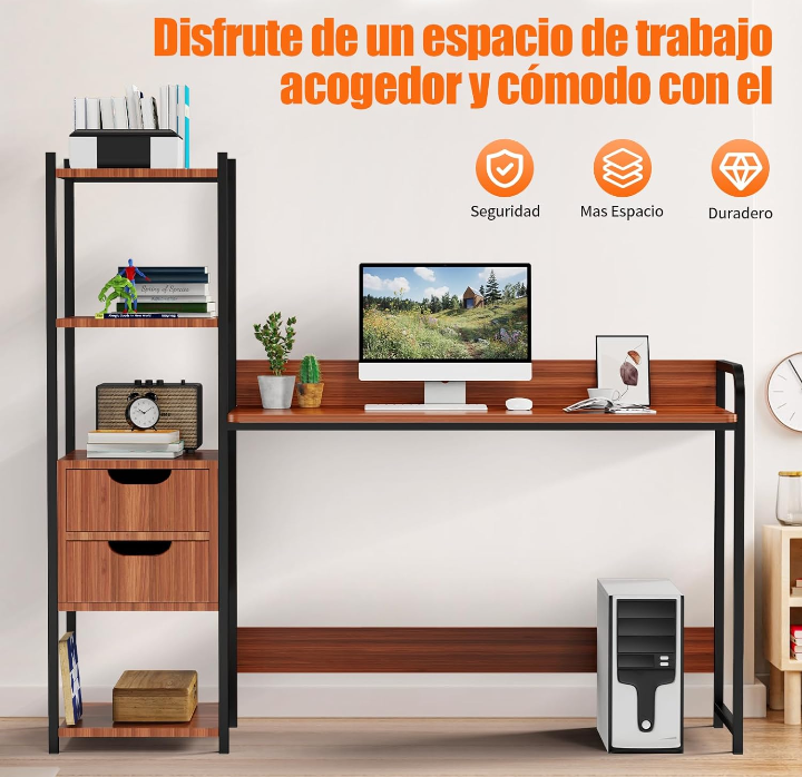 Diseño Multifuncional De Estantes De Almacenamiento: Enriquece tu espacio de trabajo con estos escritorios diseñados con estantes de almacenamiento útiles para maximizar el espacio. La versatilidad permite ajustar la posición de los estantes para satisfacer tus necesidades de almacenamiento. El panel lateral humano evita que los bolígrafos y objetos pequeños se deslicen, manteniendo el escritorio ordenado.Ideal para organizar revistas, carpetas, libros y pósters, proporcionando un espacio de trabajo ordenado y eficiente.