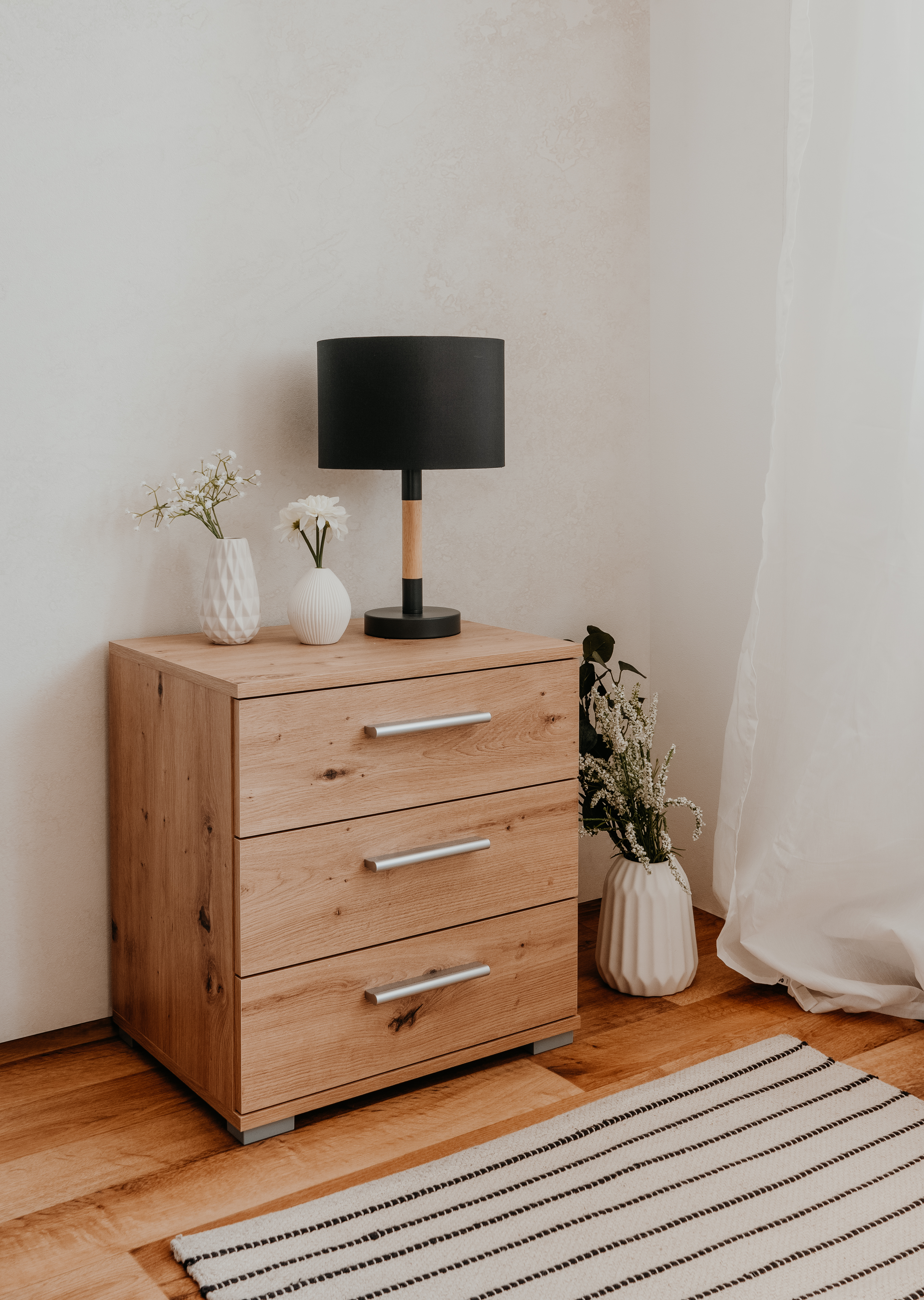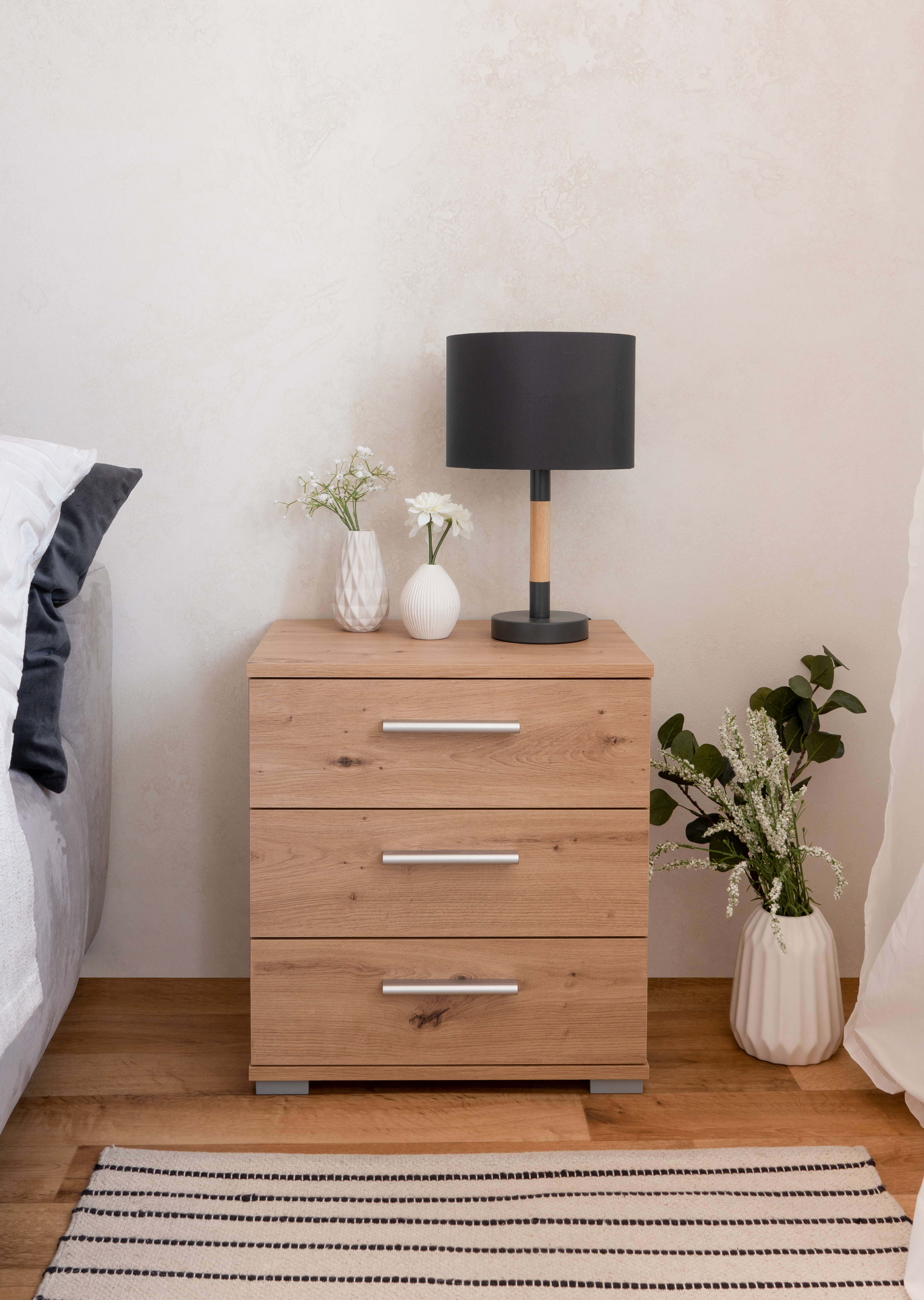 Fabricado con materiales de alta calidad, combina funcionalidad y estilo. Su diseño elegante se integra fácilmente en cualquier ambiente, aportando un toque de sofisticación a tu espacio personal. La mesa de noche se entrega desmontada, facilitando su transporte y manejo. Incluimos un manual de instrucciones claro y detallado.