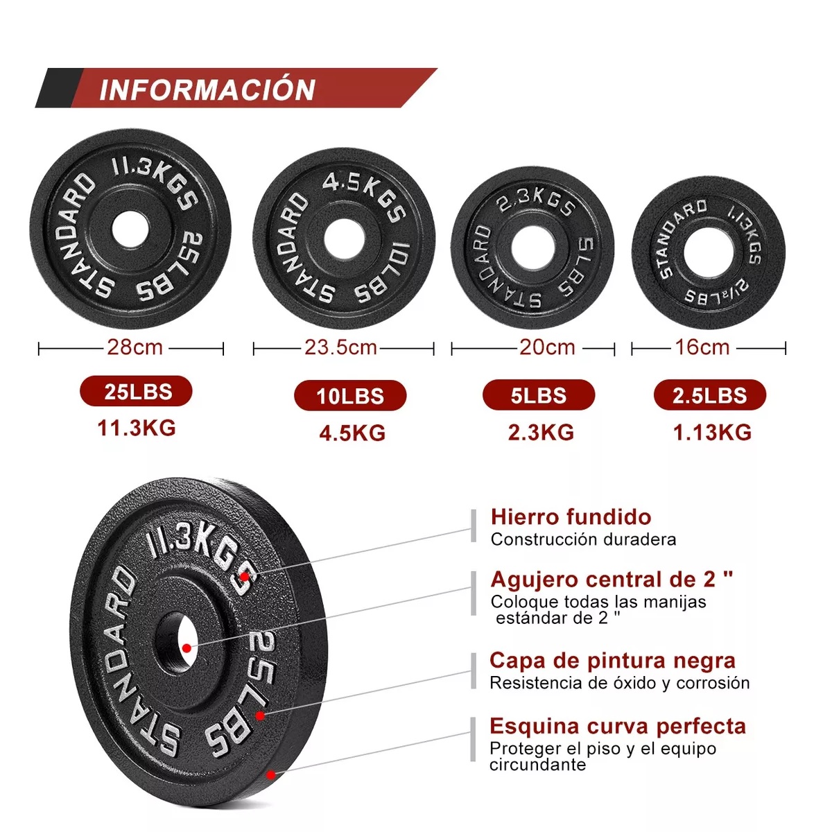 Este producto está diseñado con materiales de alta calidad y se ajusta a los estándares y medidas para uso profesional en levantamiento de pesas. Equipos pesados para el gimnasio y el hogar.