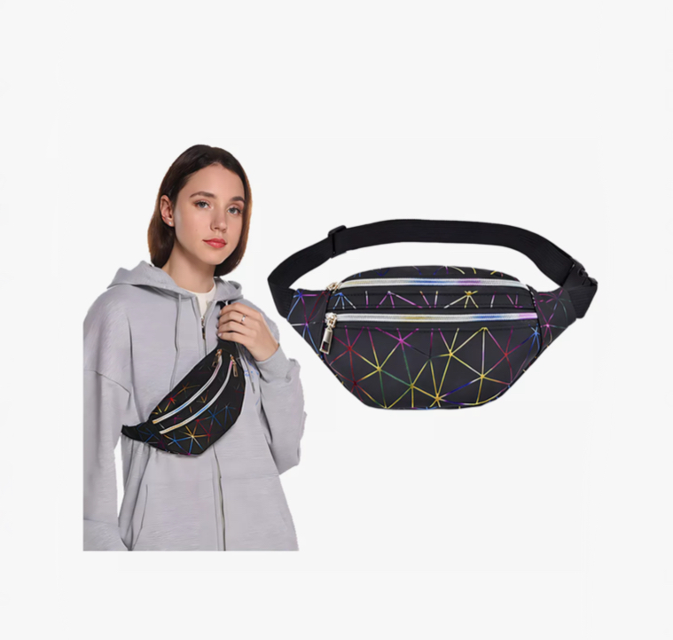 Bolsa Wünd Cintura Cangurera de Dama Decorada Negra