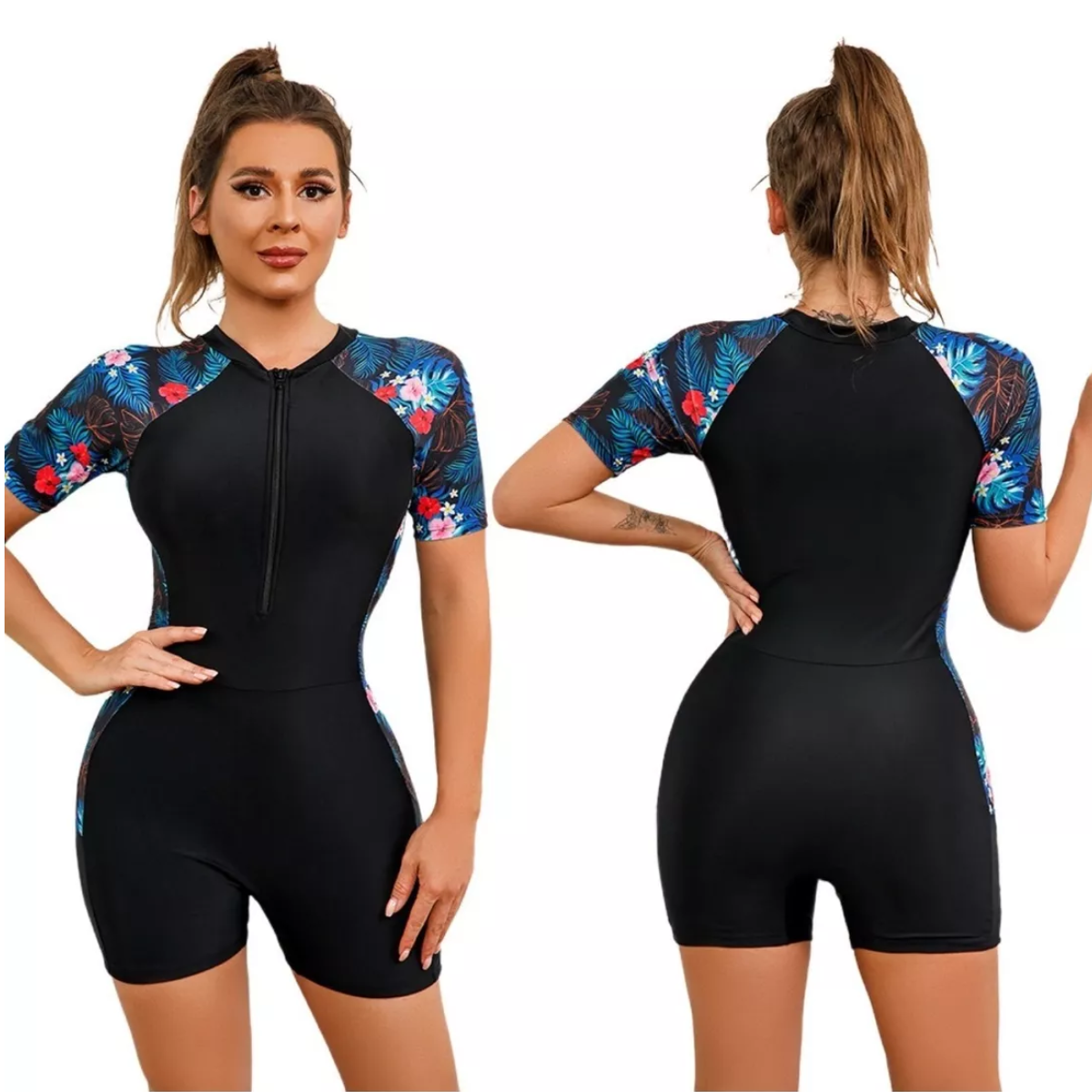 1. Este traje de baño para mujeres es una pieza de manga corta que cubre gran parte de la parte superior del cuerpo y los glúteos, protegiendo eficazmente la piel y reduciendo el daño del sol.