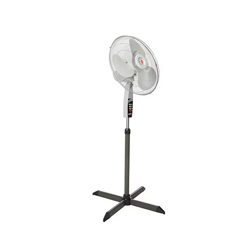Características: Rejilla metálica. Aspa de plástico en 45cm (18"). Interruptor de botones, 3 velocidades. Flujo de aire 94 m³ / min. Movimiento oscilatorio o fijo. Base tipo cruceta metálica. Inclinación vertical ajustable.