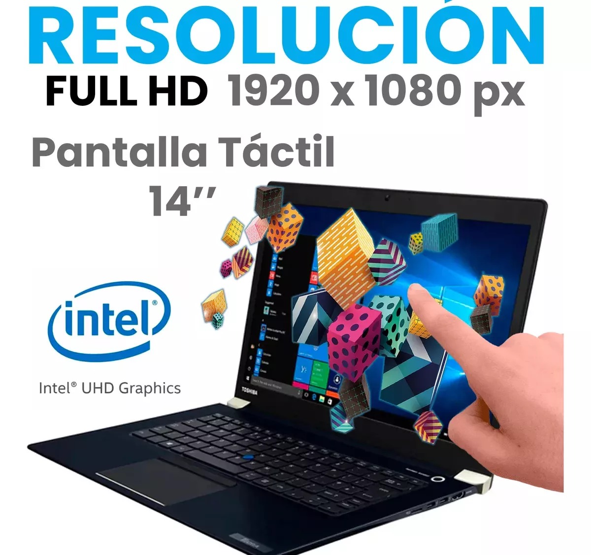 Toshiba Tecra x40-F de 14” resolución Full HD (1920 x 1080 px) INTEL CORE i5 8ta Generación 240GB EN UNIDAD SÓLIDA 16 GB de memoria RAM WINDOWS 10 pro. procesador con velocidad de hasta 2.00 GHz de 4 núcleos GPU integrado de Intel UHD Graphics 620 permite un mayor soporte para el procesador 3 Meses de Garantía directa con Pc One Tijuana Garantía vs defectos o fallas de fabrica, no incluye garantía en software
