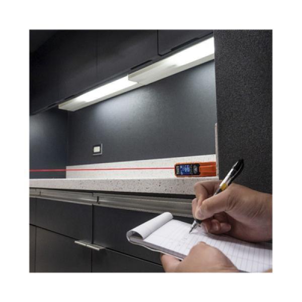 Klein Tools 93LDM100C. Tipo: Medidor láser de distancias, Unidades de medición de distancia: pies, entrada, m, Color del producto: Negro, Naranja. Distancia máxima de medición: 30,5 m, Distancia mínima de medición: 0,051 m, Precisión: 3 mm. Tipo de batería: AAA. Ancho: 28 mm, Profundidad: 33 mm, Altura: 119 mm. Número de baterías incluidas: 2 pieza(s)