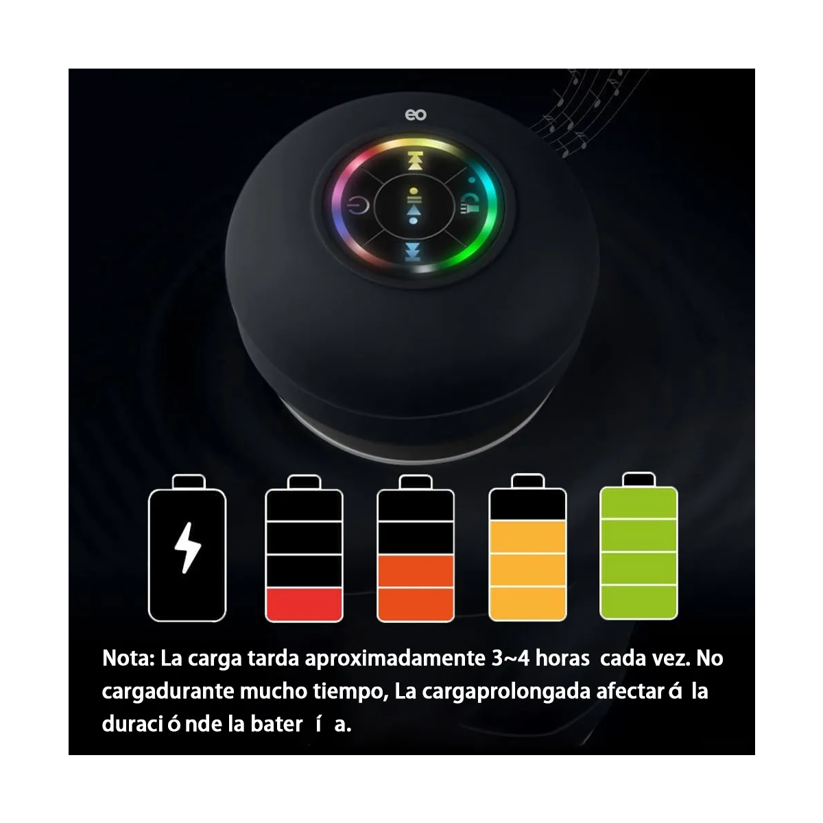 Bocina Bluetooth Contra Agua Baño Regadera Recargable Segura Color Negro